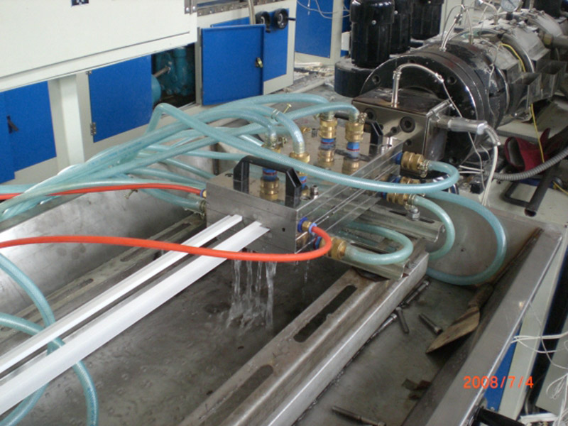 3,特殊亞軍結構擠出模頭,高精度45#鋼真空定型模具,穩(wěn)定的真空度校準表,勻速和高牽引力NBR履帶牽引機幫助制造PVC型材