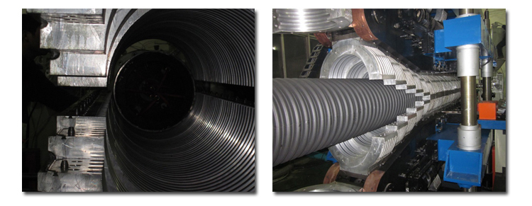 該生產(chǎn)線是以HDPE/PP為原料,所生產(chǎn)的雙壁波紋管內(nèi)壁光滑平整,外壁呈梯形波紋狀,除了具有普通塑料管所具有的耐腐蝕性好、絕緣性高、流動(dòng)阻力小等特點(diǎn)以外,還因特殊的內(nèi)外壁中空環(huán)形結(jié)構(gòu),使其具有環(huán)剛度大、質(zhì)量輕、耐高壓、韌性好、耐磨、耐沖擊性強(qiáng)、不易破損、施工方便、安裝成本低、使用壽命長(zhǎng)等特點(diǎn)。該雙壁波紋管一般采用擴(kuò)口承插和密封圈連接,可以有效防止熱脹冷縮的影響,被廣泛應(yīng)用于市政改造工程、建筑、工農(nóng)業(yè)排水、農(nóng)業(yè)節(jié)水灌溉、污水處理工程等領(lǐng)域。