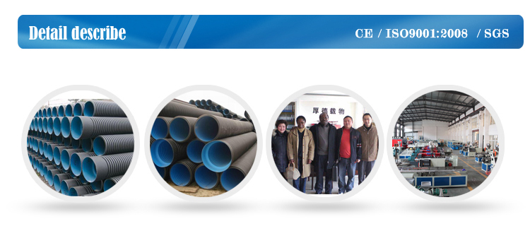 該生產(chǎn)線是以HDPE/PP為原料,所生產(chǎn)的雙壁波紋管內(nèi)壁光滑平整,外壁呈梯形波紋狀,除了具有普通塑料管所具有的耐腐蝕性好、絕緣性高、流動(dòng)阻力小等特點(diǎn)以外,還因特殊的內(nèi)外壁中空環(huán)形結(jié)構(gòu),使其具有環(huán)剛度大、質(zhì)量輕、耐高壓、韌性好、耐磨、耐沖擊性強(qiáng)、不易破損、施工方便、安裝成本低、使用壽命長(zhǎng)等特點(diǎn)。該雙壁波紋管一般采用擴(kuò)口承插和密封圈連接,可以有效防止熱脹冷縮的影響,被廣泛應(yīng)用于市政改造工程、建筑、工農(nóng)業(yè)排水、農(nóng)業(yè)節(jié)水灌溉、污水處理工程等領(lǐng)域。